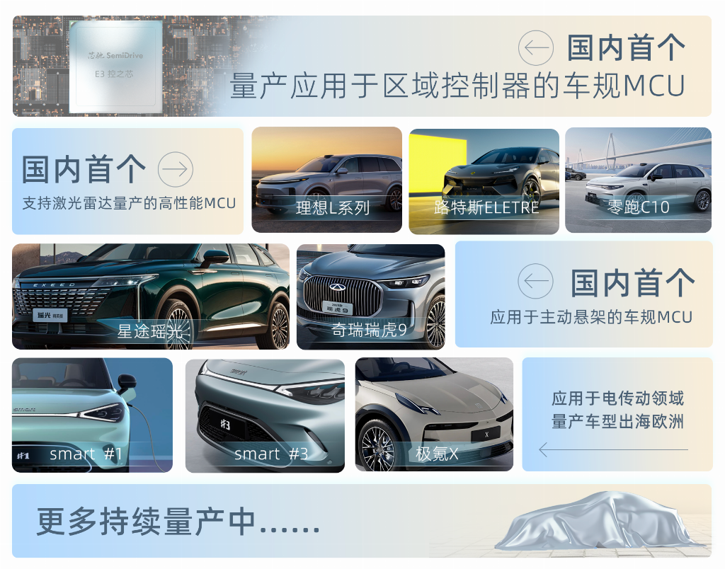 2024年下半年上市的本土爆款车型上,E3系列产品成为国内首个量产应用于区域控制器的车规MCU。