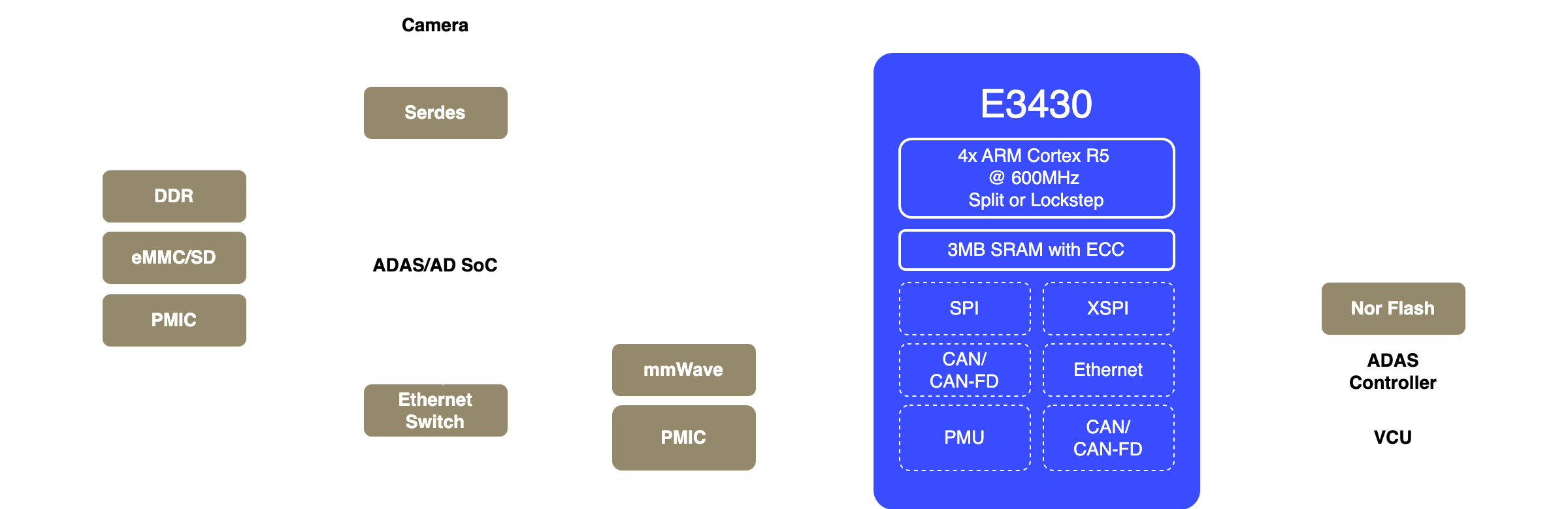 - 主控MCU提供两对600MHz Cortex-R5锁步内核,3MB SARM,支持复杂规划控制算法部署